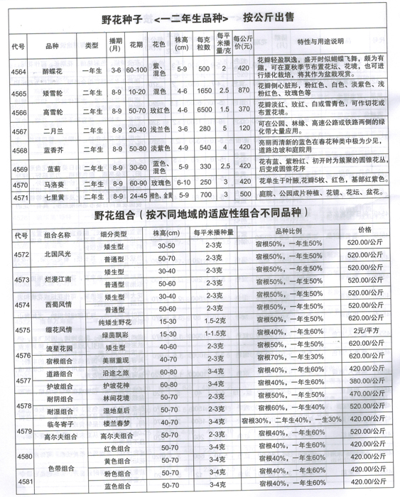 花卉种子价目表
